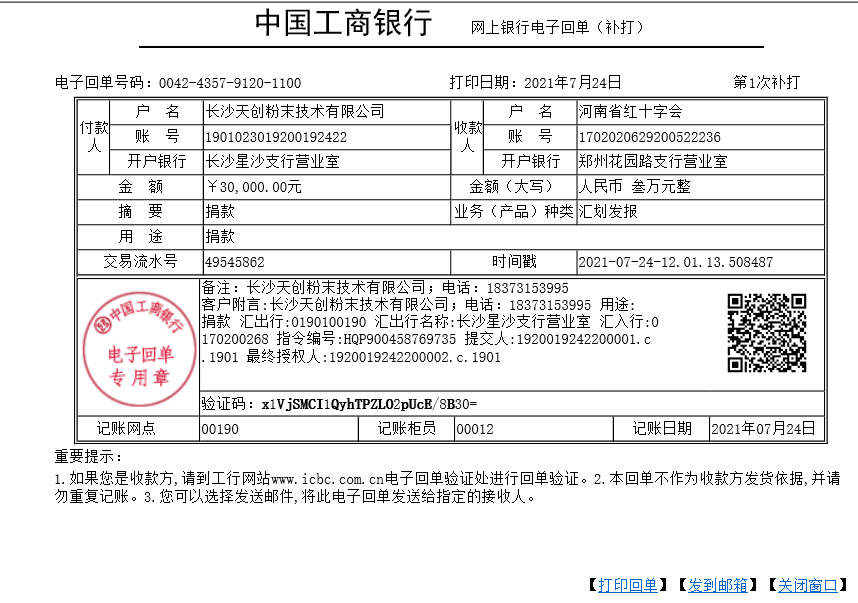 看到這種情況,各地企業(yè)與個(gè)人都向河南伸出援助之手長(zhǎng)沙天創(chuàng)粉末技術(shù)有限公司也向河南捐款3萬(wàn)元。