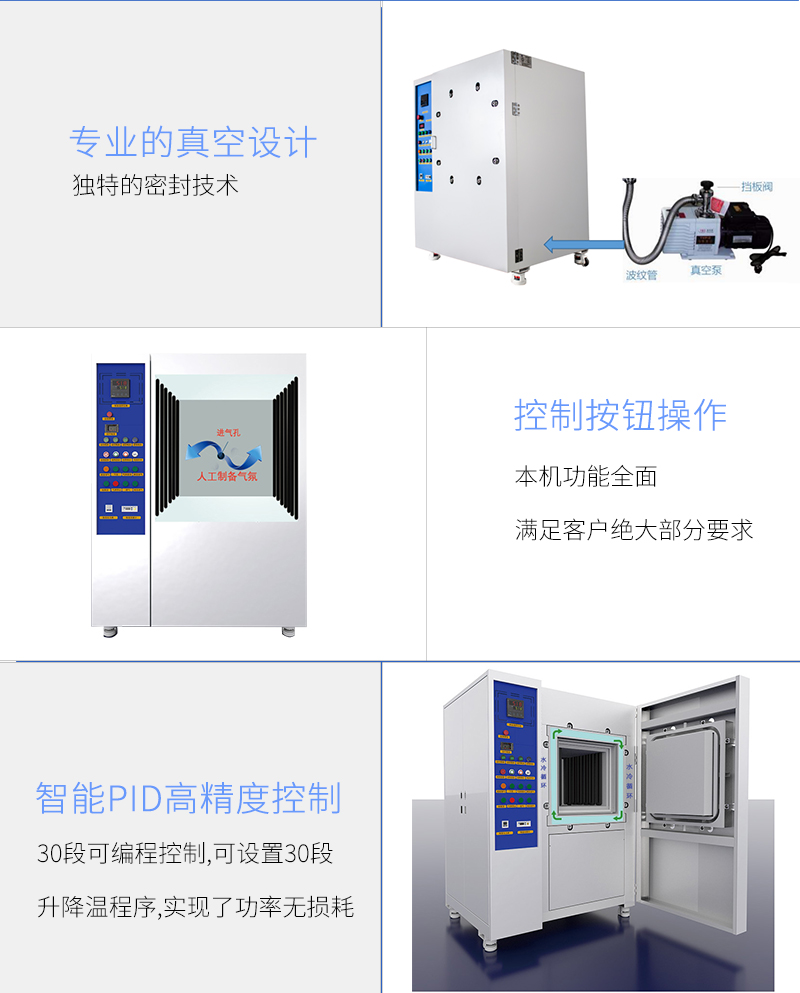 ▪控溫精密,具備多種控溫器可供選擇,溫度波動。ǹ販鼐取1℃)。真空度最高可達到0.1兆帕,正壓可到0.09兆帕。