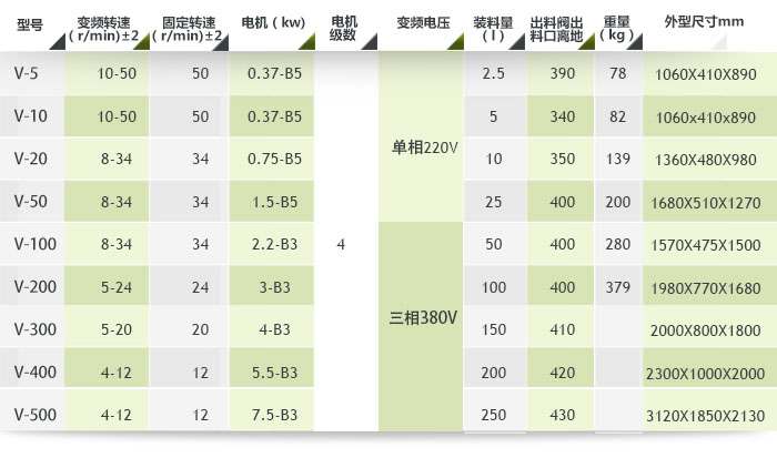 五、V型混合機參數